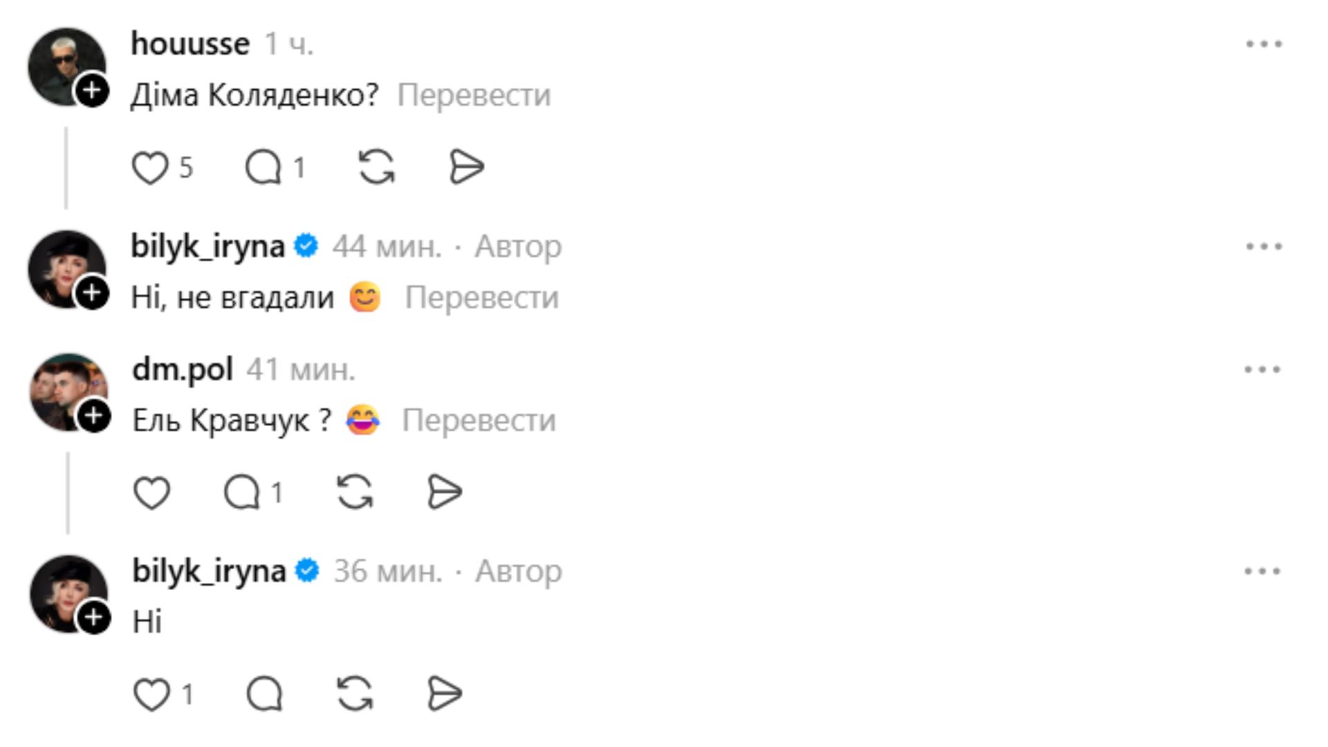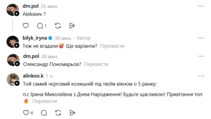 Пользователи начали массово угадывать, кто заказал такое поздравление. Среди "подозреваемых" называли EL Кравчук, Алексеев и Дима Коляденко — все они связаны с Билык личными или творческими историями. Однако сама певица быстро отреагировала и опровергла эти версии.