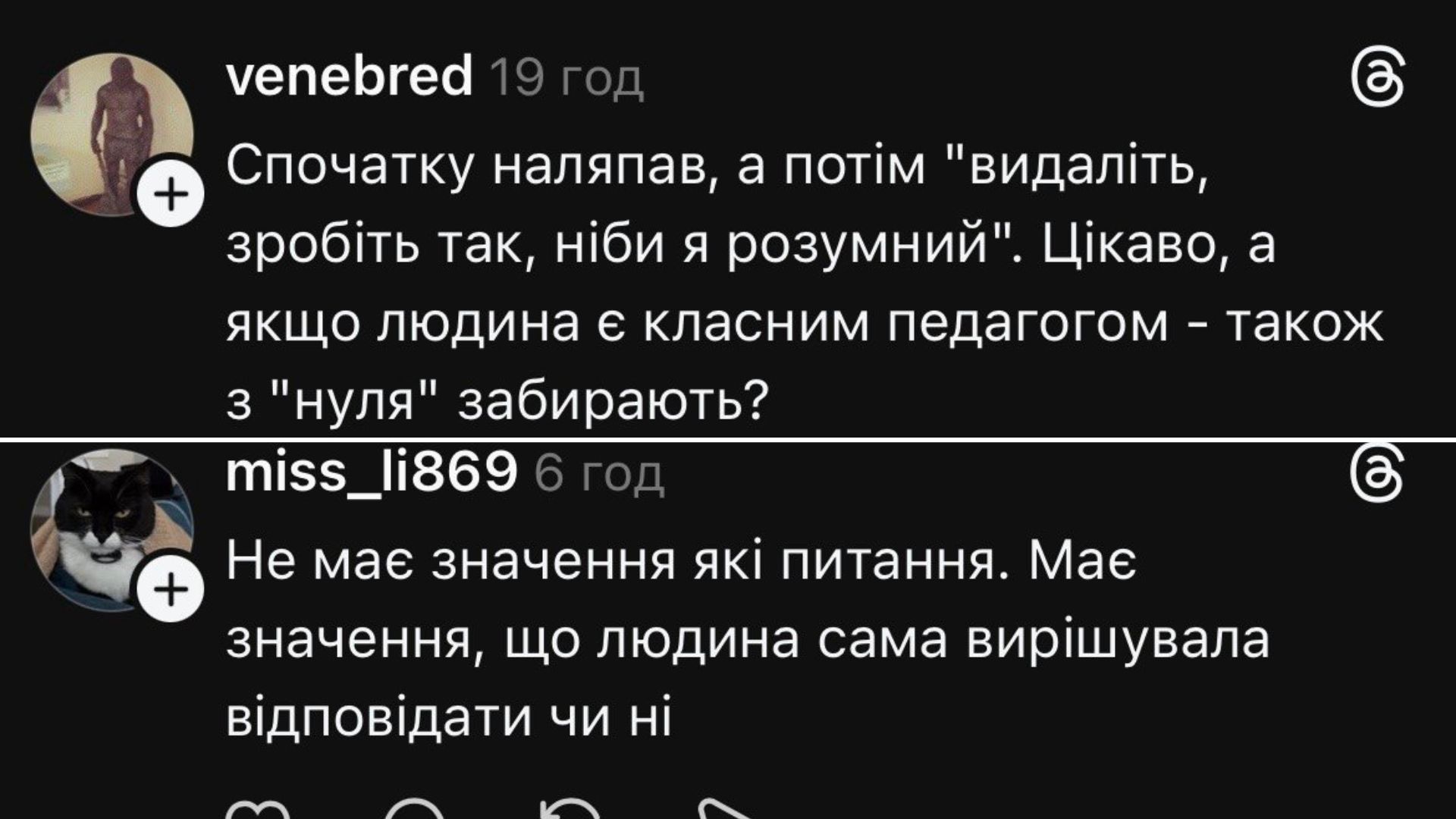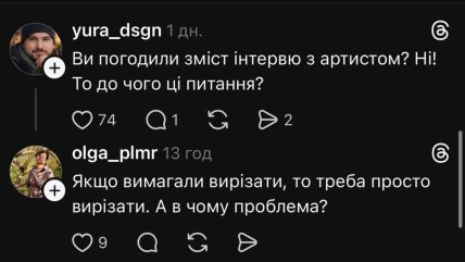 В частности, в Threads пользователи активно упрекают журналистке за публикацию полной версии разговора без согласования. Есть также те, кто не поддерживает и Тараса Тополь.