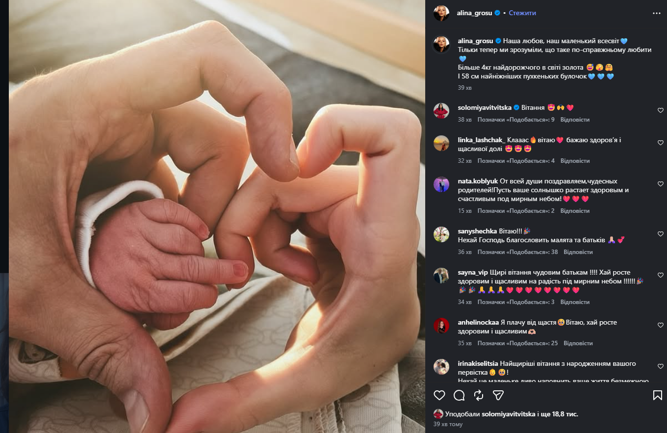 Певица, которую миллионы украинцев помнят маленькой девочкой на сцене, официально перешла в новый статус. Алина Гросу впервые стала мамой, подарив сына своему таинственному мужу.