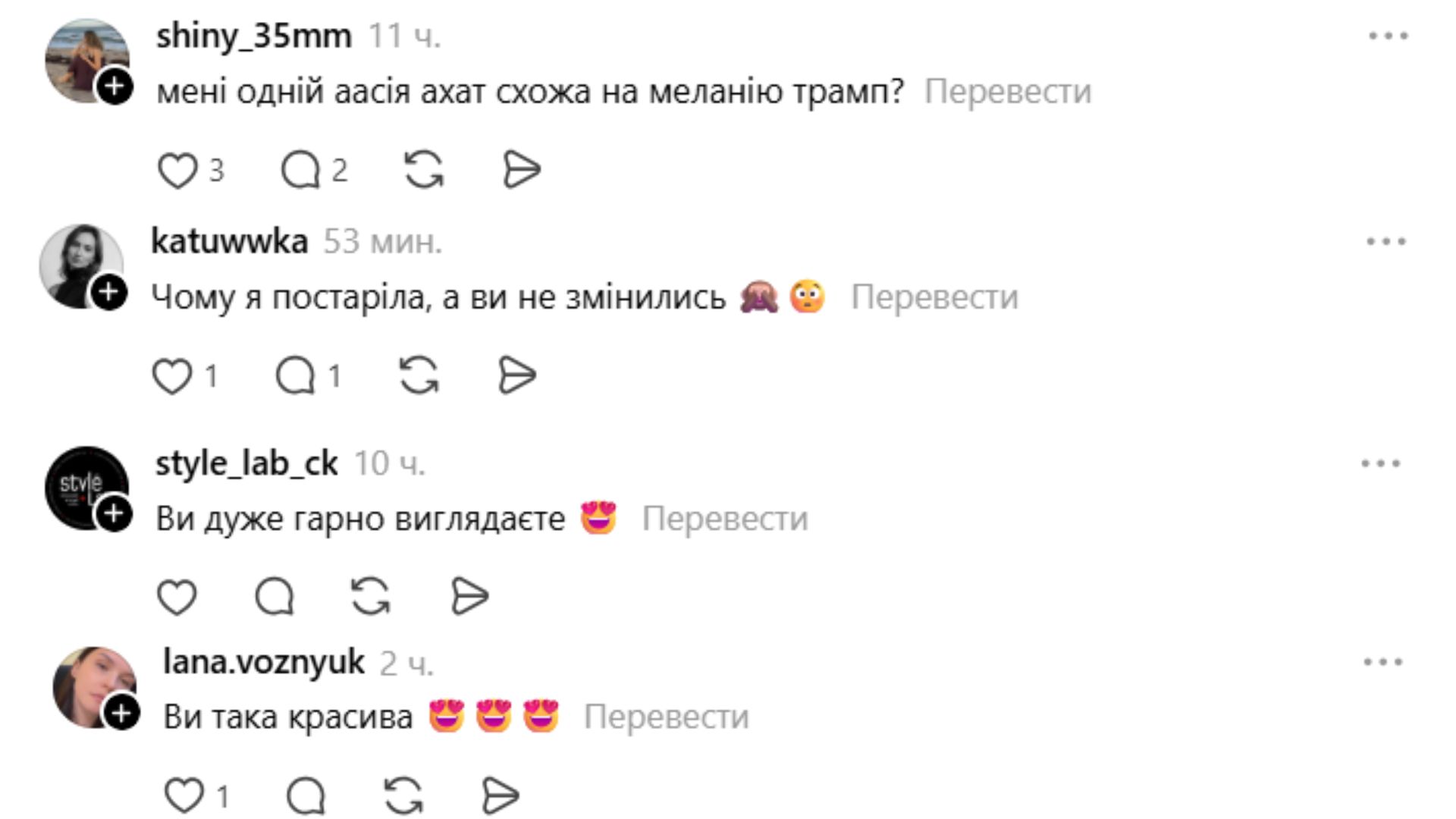 Под постом быстро появились десятки комментариев. Часть пользователей обратила внимание на внешнее сходство артистки с Меланией Трамп. Другие же просто восхищались ее внешним видом и формой: