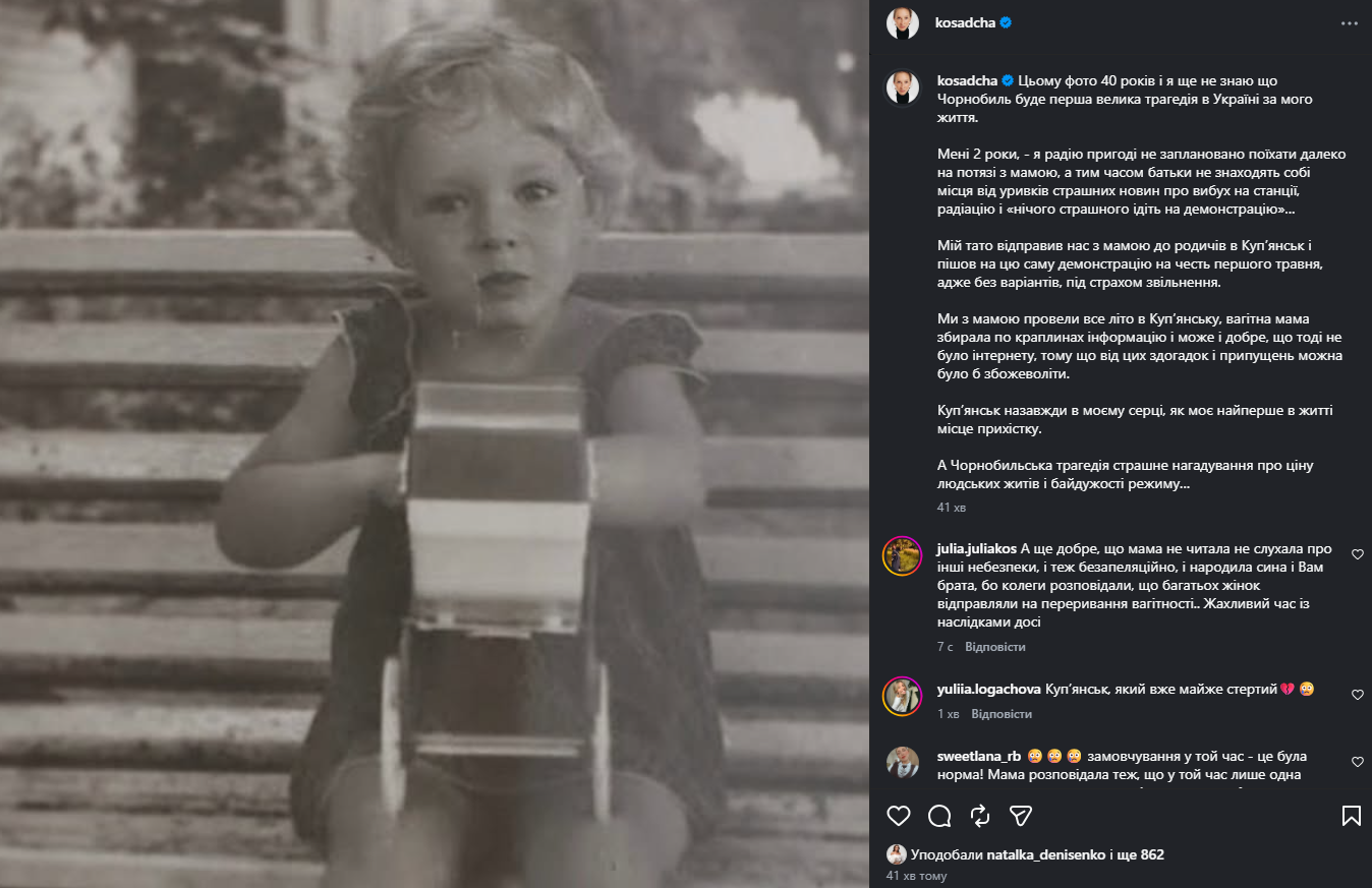 Ведущая призналась, что именно из-за тех событий Купянск навсегда остался в ее сердце как первое в жизни место убежища. Екатерина подчеркнула, что Чернобыльская катастрофа — это вечное и страшное напоминание о том, как высока цена человеческой жизни и насколько сокрушительна может быть безразличие режима.