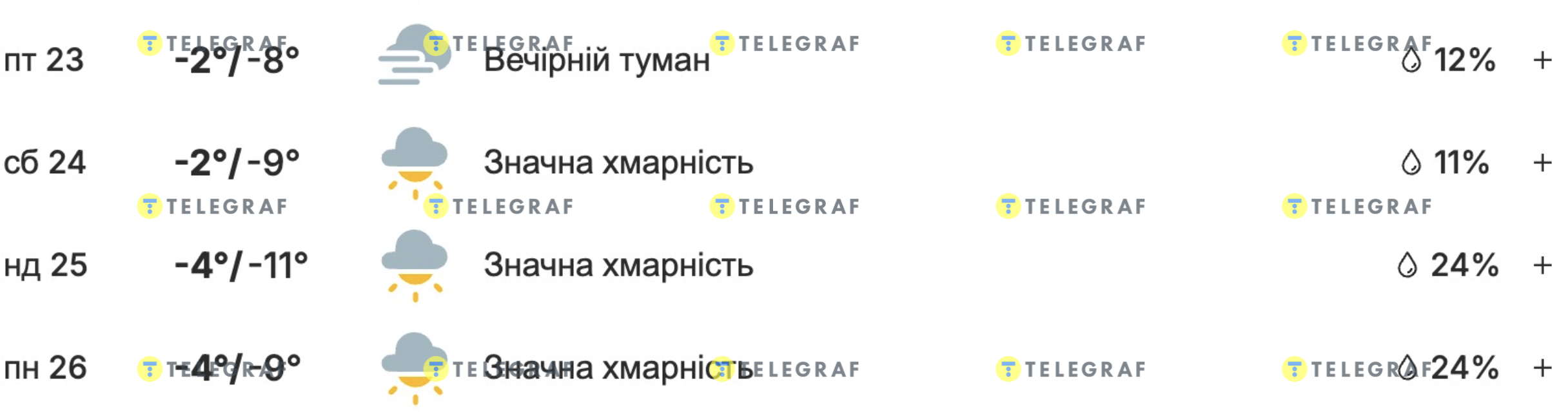 Заметим, что по данным портала weather.com, потепление во Львове не будет столь существенным. Здесь синоптики прогнозируют от -9 до -2 градусов всего 23-24 января, а на 25 уже обещают от -11 до -4 градусов.
