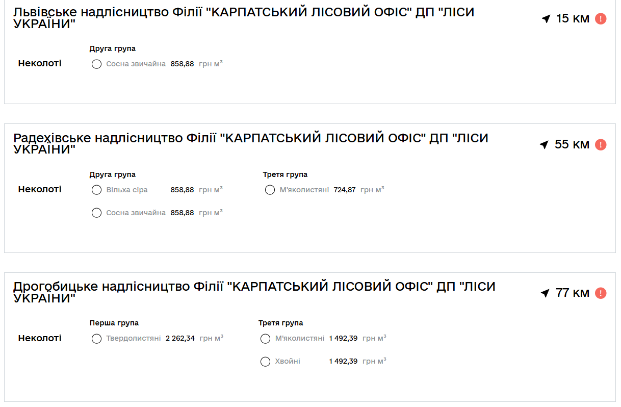 Согласно информации с этого портала, например, не колотая сосна (2 группа) будет стоить от 810 до 1291 гривен за куб в зависимости от лесничества, где будет оформлена покупка. Липа, осина и прочая древесина 3 группы обойдется от 694 гривен, а за 1197-1451 грн можно купить березу, клен, черешню 1 группы.