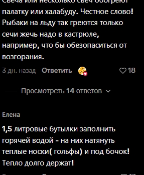 Также некоторые пользователи тоже поделились своими советами. В частности, советуют использовать подручные средства для сохранения тепла.