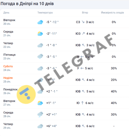 Перелом в погоде наступит уже в период с 26 по 29 января. Именно в эти дни в Днепре прогнозируется резкое потепление. Днем температура может подняться до +4…+6 градусов, а ночью будет держаться в пределах 0…+4. Самые высокие показатели ожидают 30 и 31 января, когда воздух днем прогреется до +8.