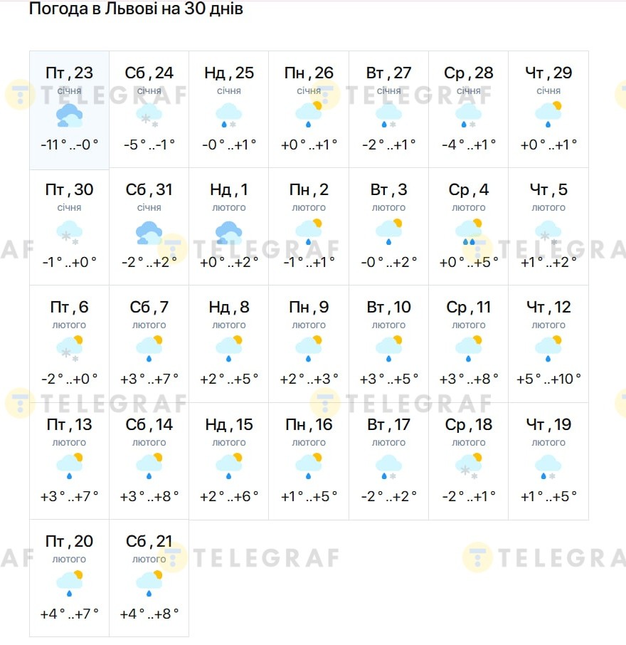 В Львове в ближайшие недели ожидается неустойчивая погода. Синоптики прогнозируют, что осадки в городе ожидаются почти ежедневно и могут продолжаться до конца февраля.