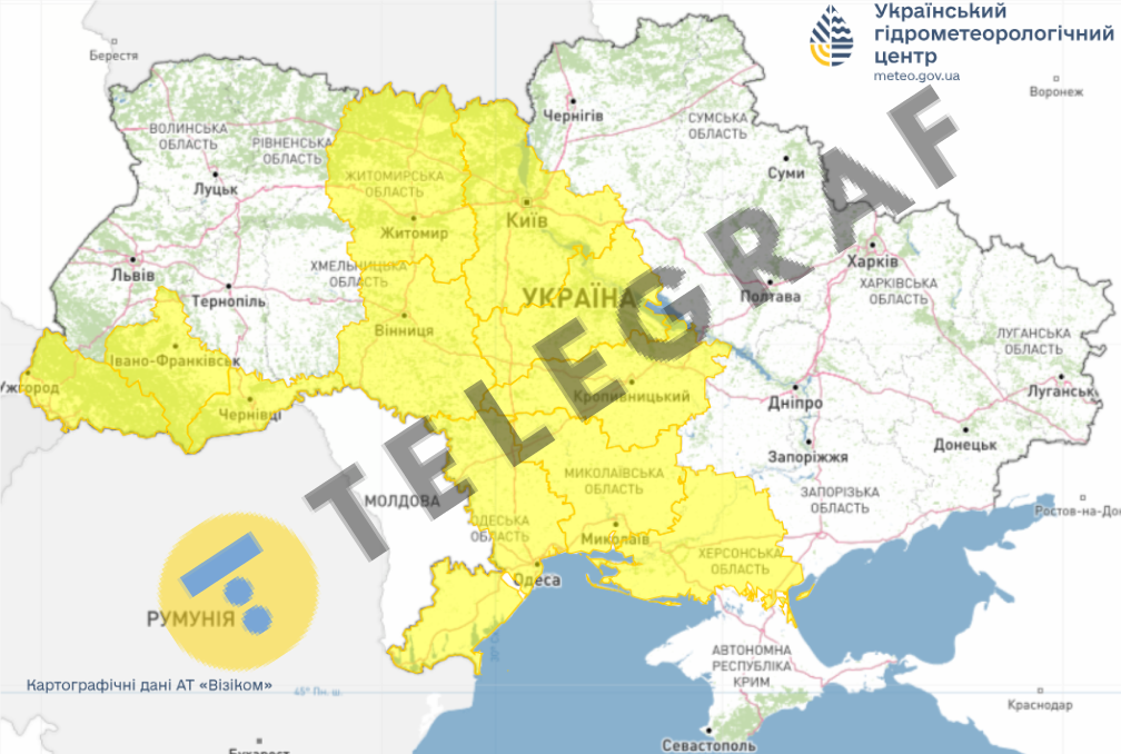 Предупреждение Укргидрометцентра о желтом уровне опасности