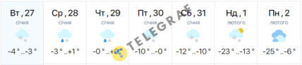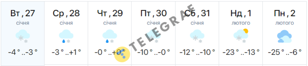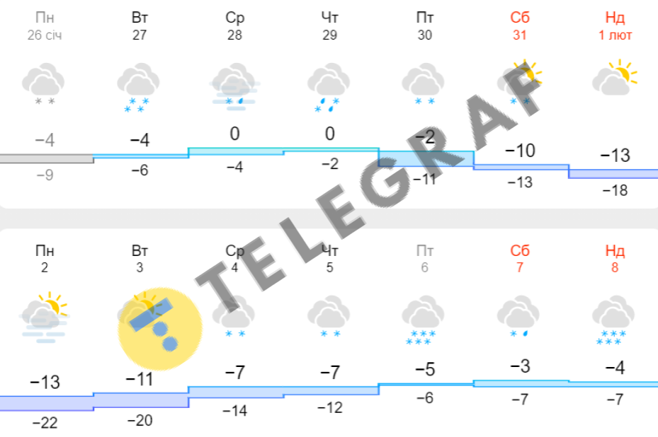 Самые низкие показатели синоптики прогнозируют в начале февраля. По информации сервиса Meteofor, ночь на 2 февраля может оказаться самой холодной — ожидается до -22 градусов. В то же время, на сайте meteo.ua отмечают, что температура может опуститься даже до -25 градусов.