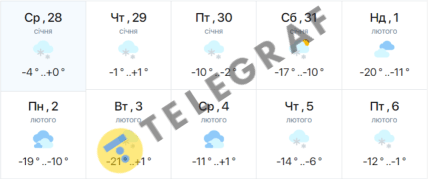 Самые низкие показатели синоптики прогнозируют в начале февраля. По информации сервиса Meteofor, ночь на 2 февраля может стать самой холодной – ожидается до 22 градусов мороза. В то же время, на сайте meteo.ua отмечают, что температура может опуститься даже до 25 градусов мороза.