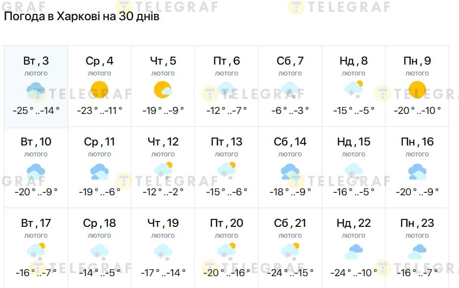 Февраль в Харькове будет холодным