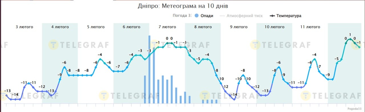 В начале второй недели месяца показатели на термометрах в ночное время упадут до -14…-13 градусов, а днем будет около -8…-4 градусов. С 12 февраля днепрянам следует готовиться к новой волне потепления.