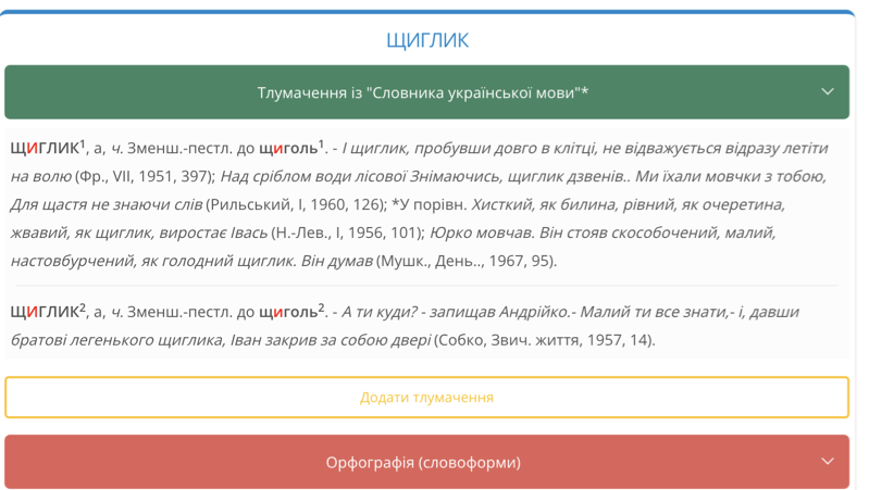 Хотя оба слова имеют общий корень, происходящий от звукоподражания (характерного "циги-циги" или "щиг-щиг", которое выдает птица), именно форма "щиглик" является аутентичной и зафиксированной во всех академических словарях украинского языка.