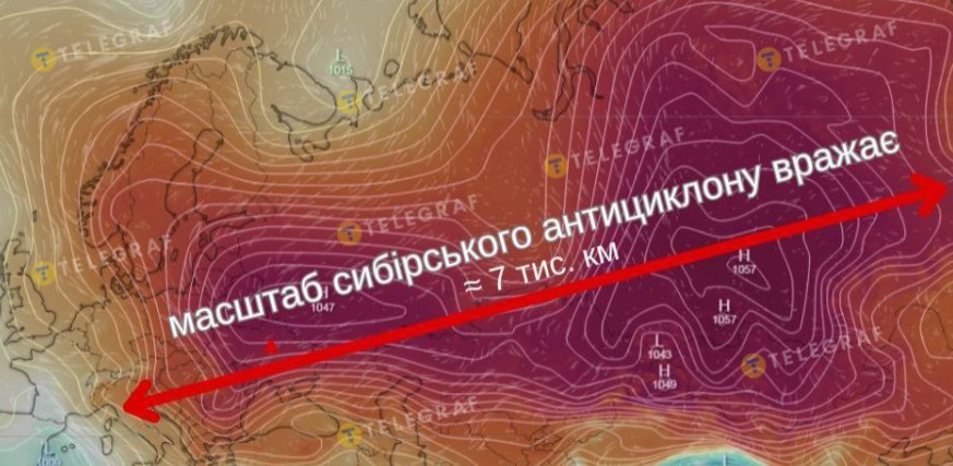 Масштаб сибирского антициклона, поступивший в Украину 16 января 2026 года