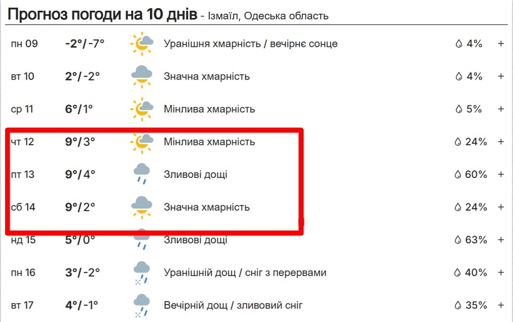 В Одесской области с 12 по 14 февраля ночью прогнозируется от +2°C до +4°C. Днем термометры будут показывать +9°C. В эти дни будет облачная погода и возможны осадки в виде ливневых дождей.