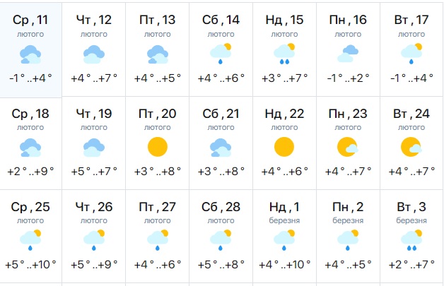 При этом синоптики сайта Meteo.ua еще более оптимистичны в своем прогнозе. Они считают, что потепление будет продолжаться до конца месяца, а температура воздуха ближе к концу февраля может достигать +10 градусов. Также возможны осадки в виде дождя на протяжении нескольких дней.