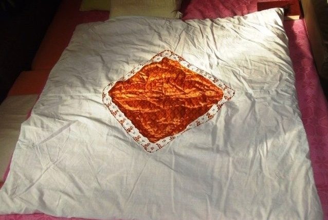 А вот ромб посередине позволял видеть, как распределяется одеяло внутри, легко дотянуться до любого угла, расправить комки, не вытаскивая все одеяло наружу.