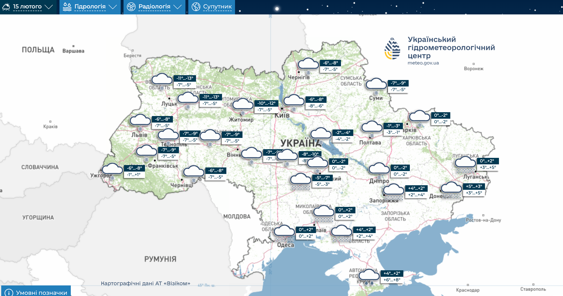 Погода в Киеве на 15 февраля