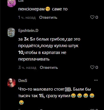 "За 3 к 5 л белых грибов, где это продается, поеду куплю 10 штук, чтобы в Карпатах не переплачивать";