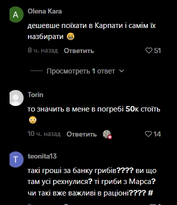 В то же время, некоторые придерживаются другого мнения. Пользователи подсчитали, что цена банки грибов в 0,5 литра будет стоить 299 гривен, что приемлемо для такого продукта.