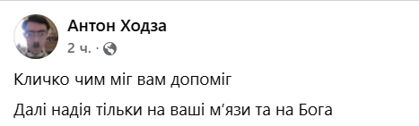 Главный редактор медиа "Ґрунт" Антон Ходза написал в Facebook: "Кличко чем мог, вам помог. Дальше надежда только на ваши мышцы и на Бога".