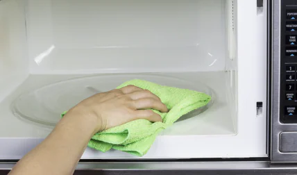 Со временем микроволновка собирает слой жира и засохших капель, и обычное протирание часто не помогает.