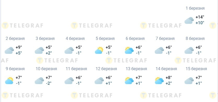 В первой половине месяца температура днем будет находиться в коридоре +5…9 градусов, иногда будет достигать +14. Теплее всего ожидается 1 марта.