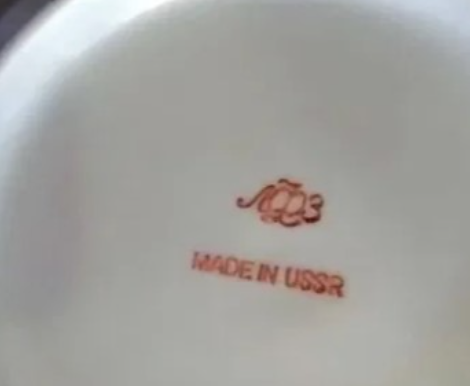 Клеймо из витиеватых букв "ЛФЗ" свидетельствует, что это продукция от Ленинградского фарфорового завода. Знаменитые сервизы "Золотая осень", "Весенний", "Кобальтовая сетка" знамениты на весь мир и дорого стоят.