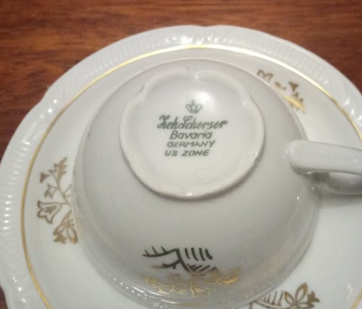 Нельзя обойти стороной и импортный фарфор. Для интереса предлагаем посмотреть крайне редкое клеймо, которое завершается словами "Germany US Zone". Это яркое свидетельство того, что эта кофейная чашка была произведена после 1945, но до 1949, когда собственно и были образованы ФРГ и ГДР. Стоимость такой кофейной пары составляет около 100 евро, но покупая такую посуду, нужно понимать, что это очень перспективное вложение, ведь антиквариат почти никогда не дешевеет.