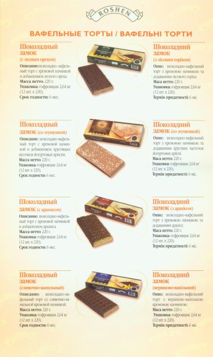 Полностью воспроизвести вкус "Шоколадного замка" не получится — это тот случай, когда продукт существовал в конкретном сочетании состава, формы и времени. Но если вы ищете что-то близкое по идее – хрустящее, шоколадное, компактное – в ассортименте ROSHEN и других производителей остаются вафельные торты и батончики с ореховыми и шоколадными начинками в глазури. Не то же, но близко.