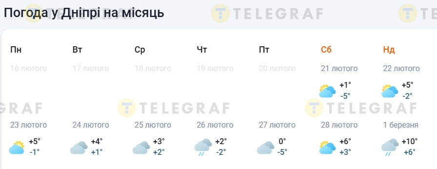 Напомним, ранее "Телеграф" писал, что в Днепре в эти выходные, 21 и 22 февраля, синоптики прогнозируют сильные ночные морозы до -15 градусов.