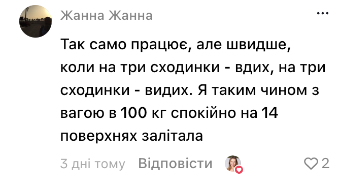 В комментариях пользователи отмечали, что уже попробовали эту технику и она действительно работает. Некоторые шутили, что единственный способ подняться на нужный этаж без одышки – это лифт. Люди писали: