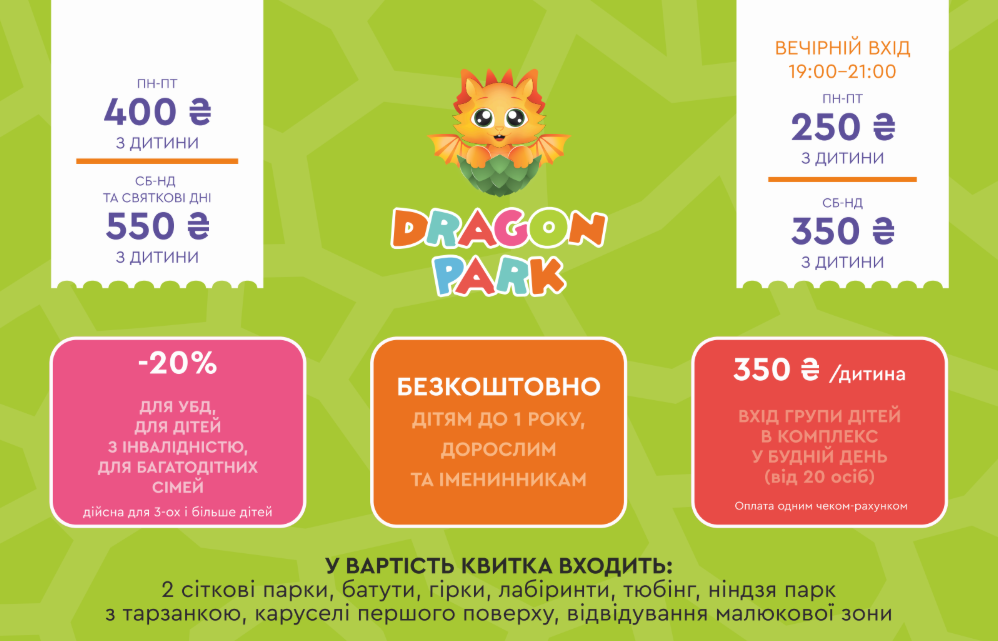 Dragon Park открылся в Львове в январе 2024 года. Кроме батутной зоны, сеточных парков, лабиринта и горок, в развлекательном центре есть аттракционы за отдельную плату, ресторан, кэнди шоп, зона для малышей и т.д. Руководитель детского центра Игорь Телишевский в комментарии LVIV.MEDIA отметил, что лабораторные исследования еще продолжаются, поэтому делать выводы о возможном отравлении именно в заведении пока рано.