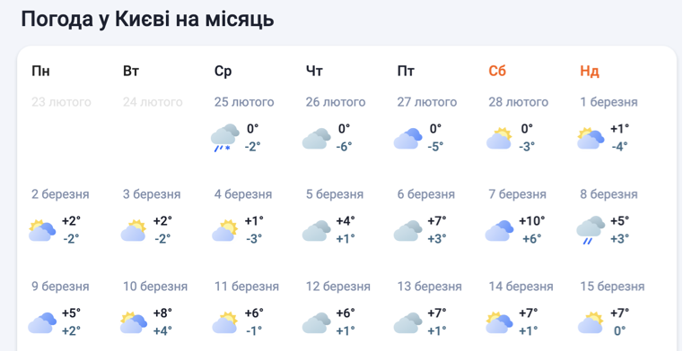 Погода в Киеве Новость обновлена 25 февраля 2026, 11:11