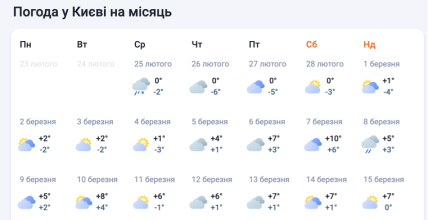 • Первый по-настоящему теплый всплеск ожидается уже 7 марта, когда столбики термометров подскочат до отметки +10°C. Вскоре после этого, 10 марта, киевлян снова порадует ясная солнечная погода с комфортной температурой около +8°C.