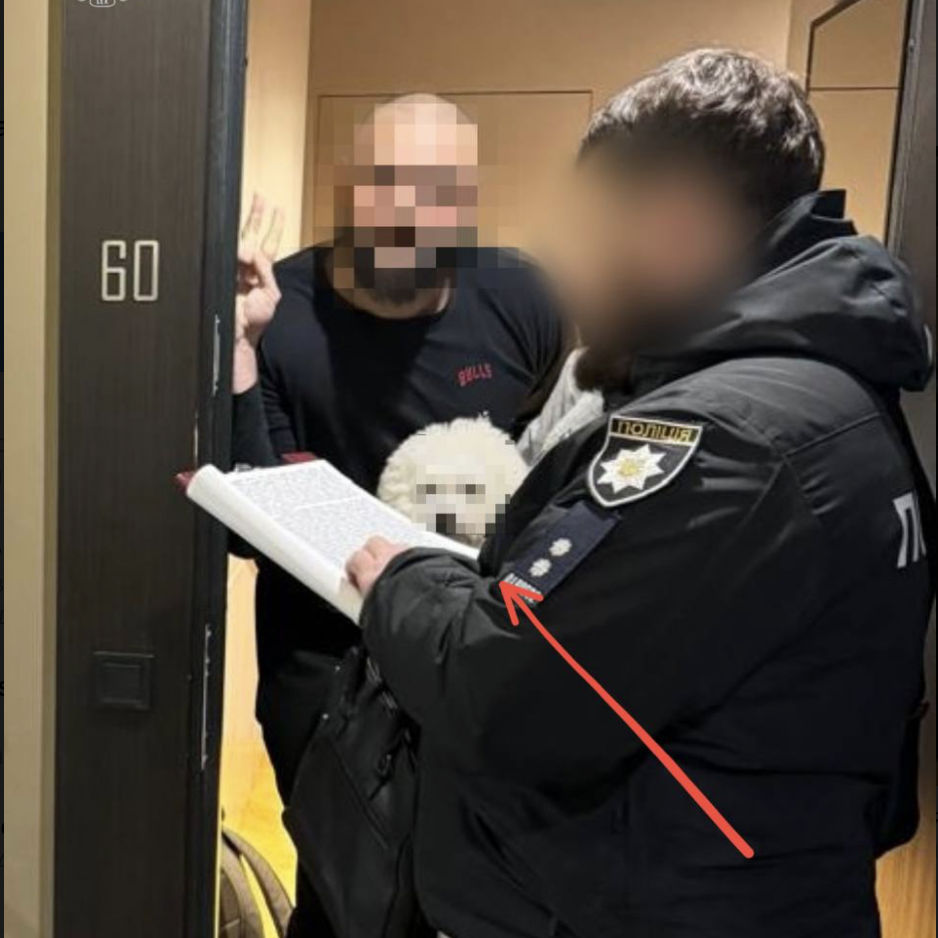 В сети завирусилось фото с одного из обысков полиции по делу о хищении денег на ремонт Трипольской ТЭС. На снимке было заблюрено не только лицо мужчины, но и морда собаки.