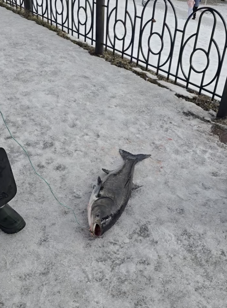 Учитывая цвет и характер чешуи можно предположить, что рыбак поймал большого толстолобика. Приблизительно то же пишут и в комментариях. Правда, без шуток здесь не обошлось. Люди отмечают: