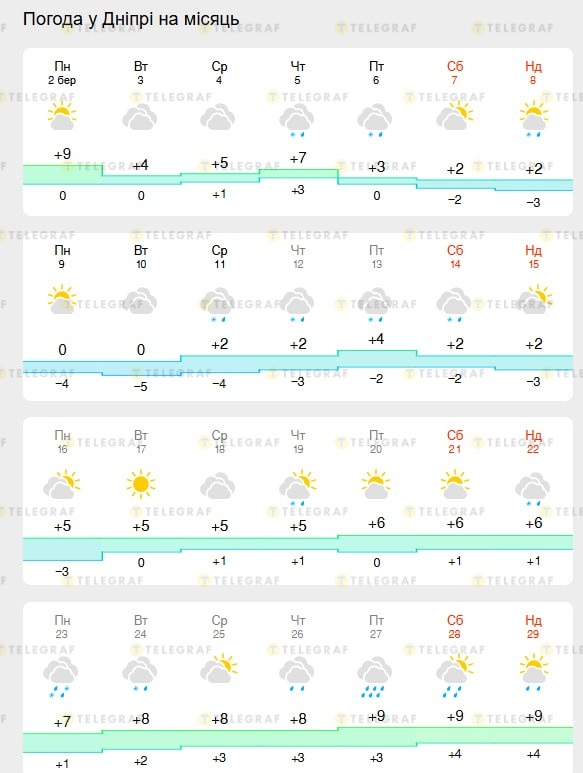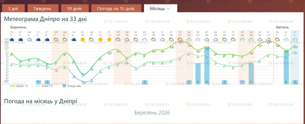 Когда именно готовиться Днепру к вероятному апрельскому теплу в марте, спрогнозировали в "Погода 33" и "Meteofor". Детальнее о погоде написал "Телеграф".