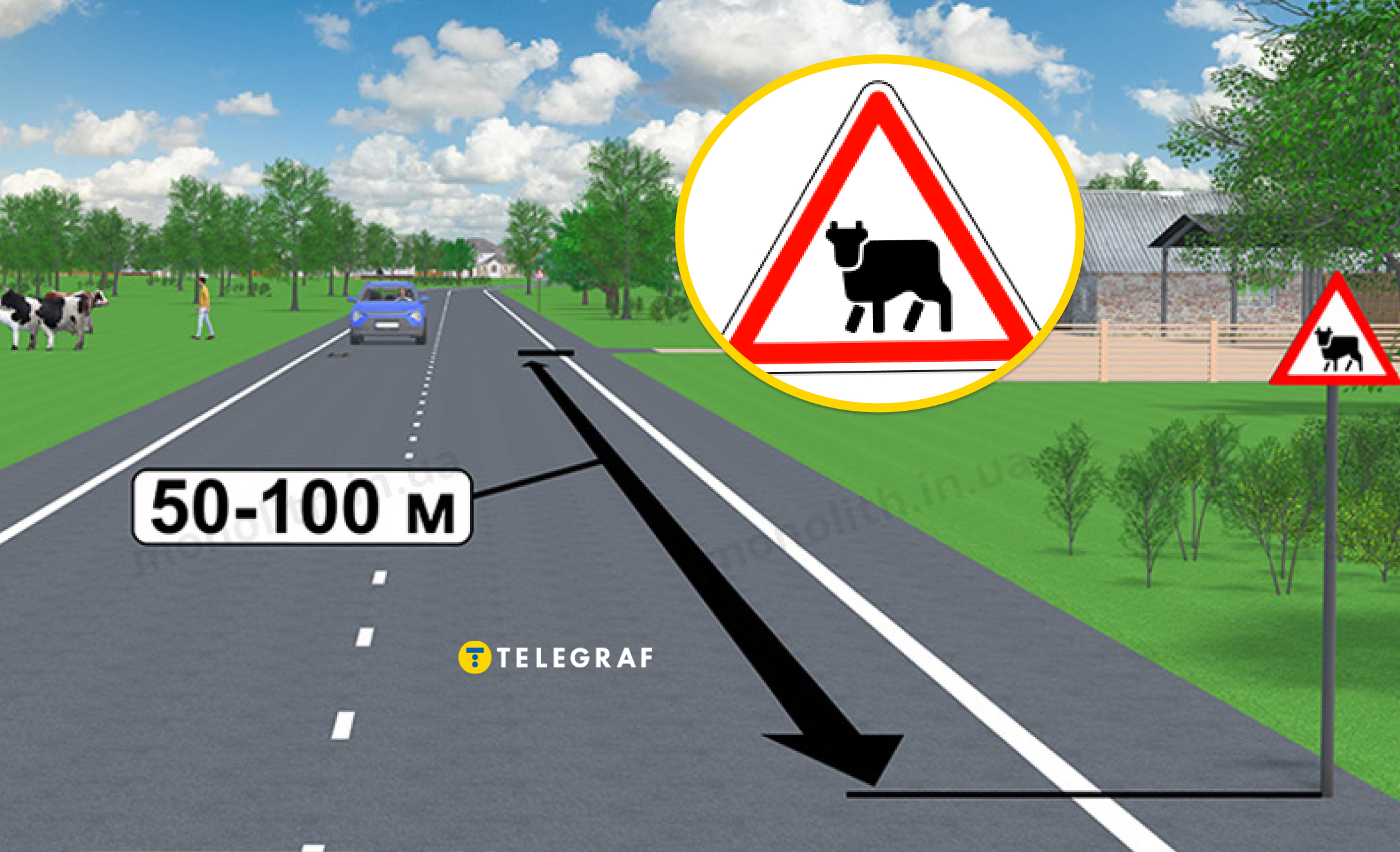 Один из таких — предупреждающий знак "Перегон скота". Его можно увидеть нечасто, ведь устанавливают его преимущественно там, где есть фермы, колхозы и пастбища. В городах таких участков практически нет, поэтому многие водители забывают о его значении.