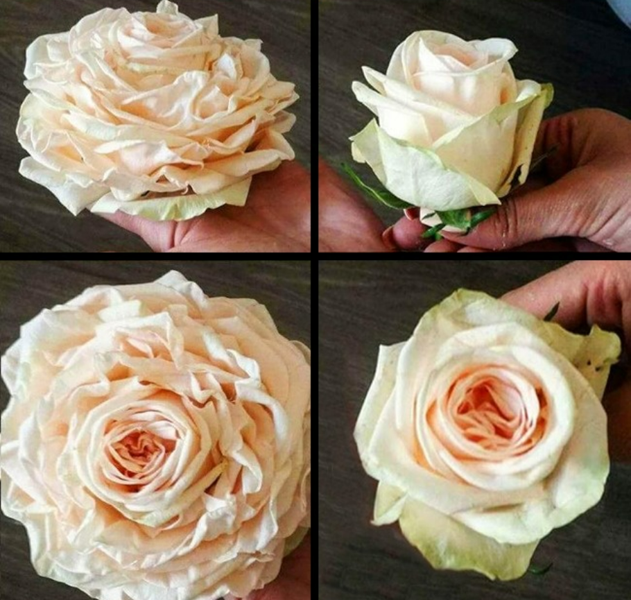 Многие розы имеют плотное основание. Цветоводы снимают увядшие лепестки до "бутону". Неискушенный покупатель может не распознать хитрость, думая, что цветки распустятся, но этого не будет.