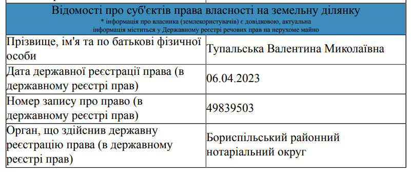И это далеко не самая дорогая покупка семьи чиновника, которая произошла уже после скандала. Так, в апреле 2023 года Тупальская купила садовый дом (2021 года постройки) на берегу Днепра в с. Вишенки. Площадь дома – 427 кв.м. Даже без ремонта дома здесь стоят от 2 тыс. долларов за кв. м. Следовательно, стоимость такого дома может достигать более 856 тысяч долларов.