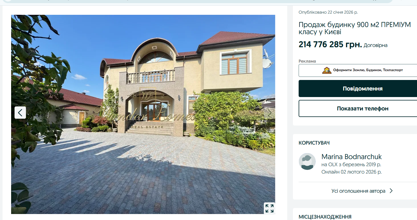 Как удалось выяснить "Телеграфу", миллионы долларов Виталий Киро тратил не только на недвижимость в ОАЭ. Имение в Киеве, которое сейчас пытаются продать за 5 млн долларов, купили в январе 2020-го. Что интересно, в реестре прав на недвижимое имущество говорится, что площадь – всего 479,9 кв. м. В то время как в объявлении указано, что площадь составляет 900 кв. м. Вероятно, в реестре нет информации о части помещений на территории.