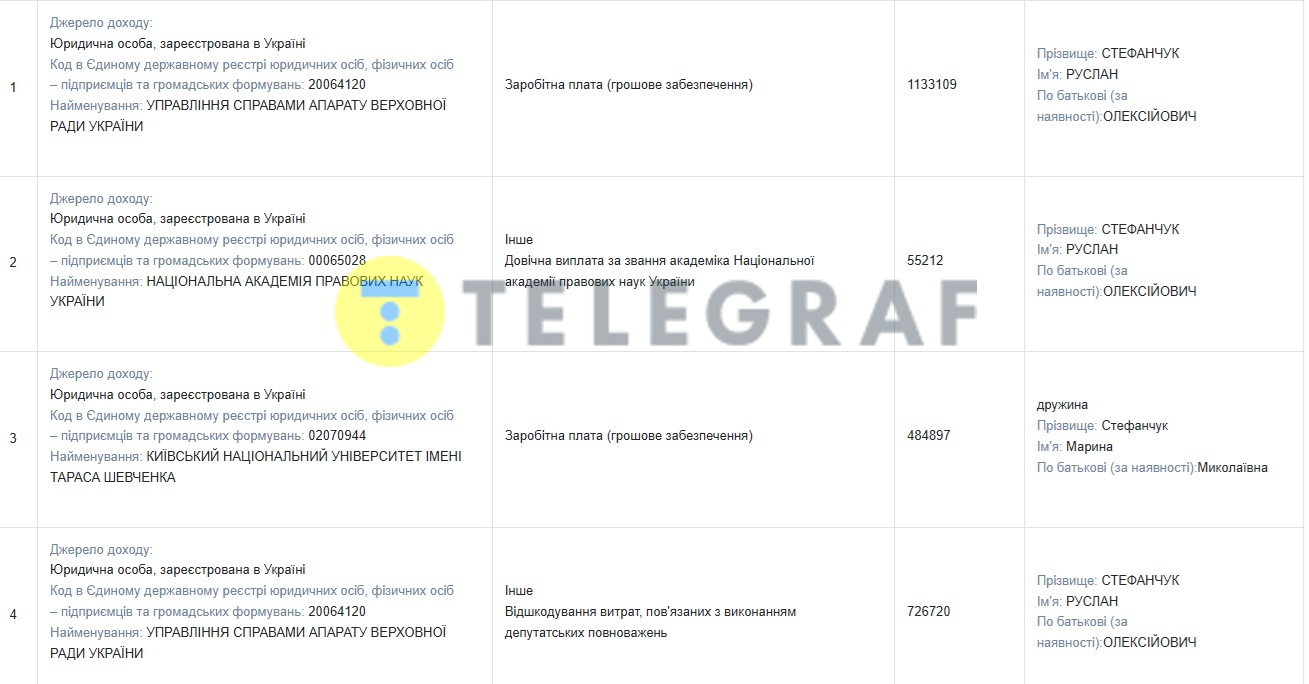 Итого: доход Руслана Стефанчука за 2025 год, согласно официальной декларации, составил 2 089 449 гривен.