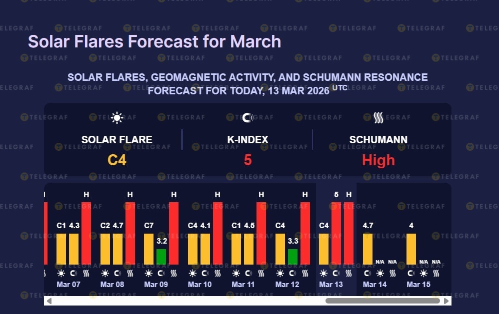 На Земле 13 марта зафиксирована повышенная геомагнитная активность. Она достигает красного уровня.