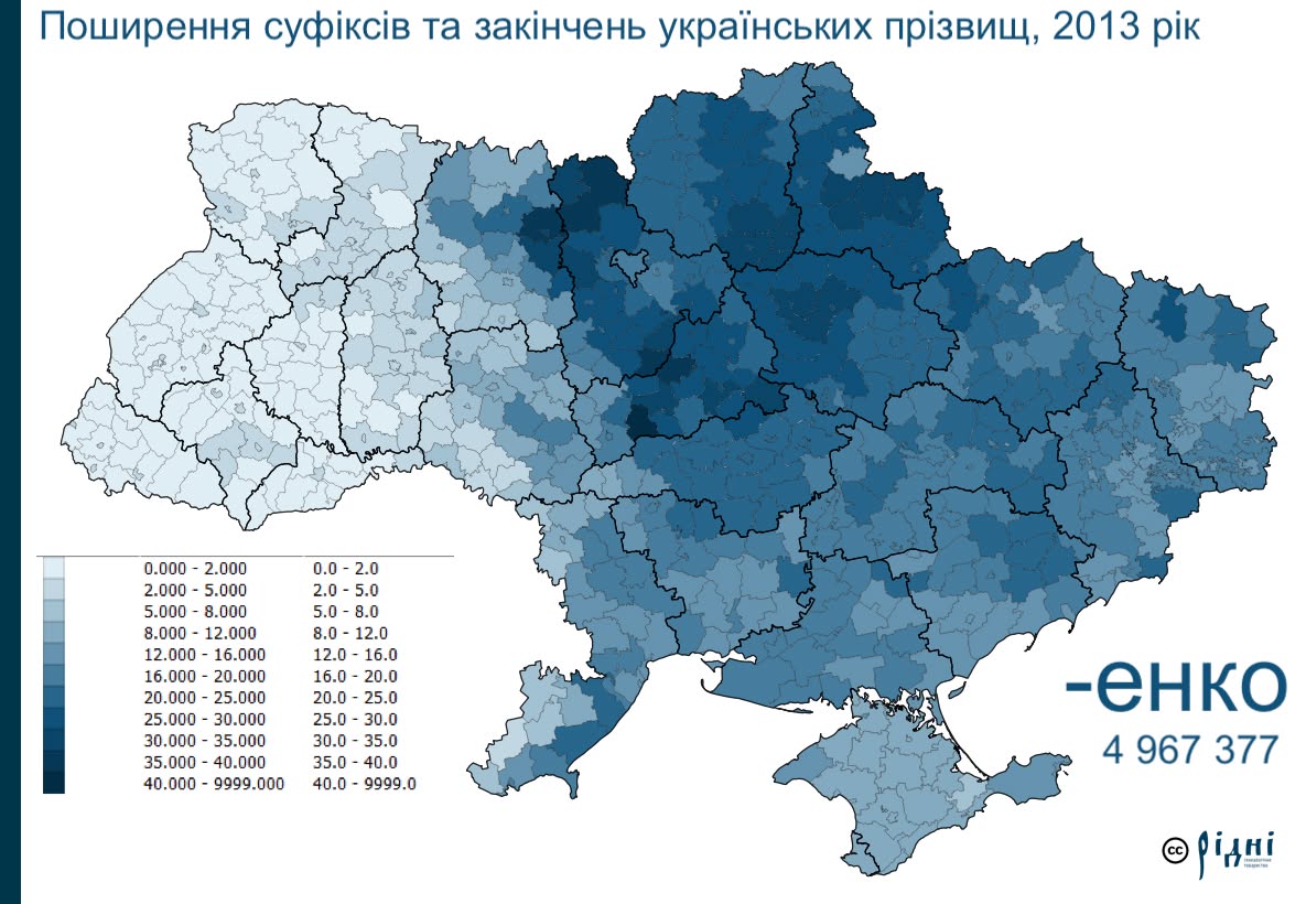 Распространение суффиксов фамилий в Украине, 2023. Данные: сайт «Родни»