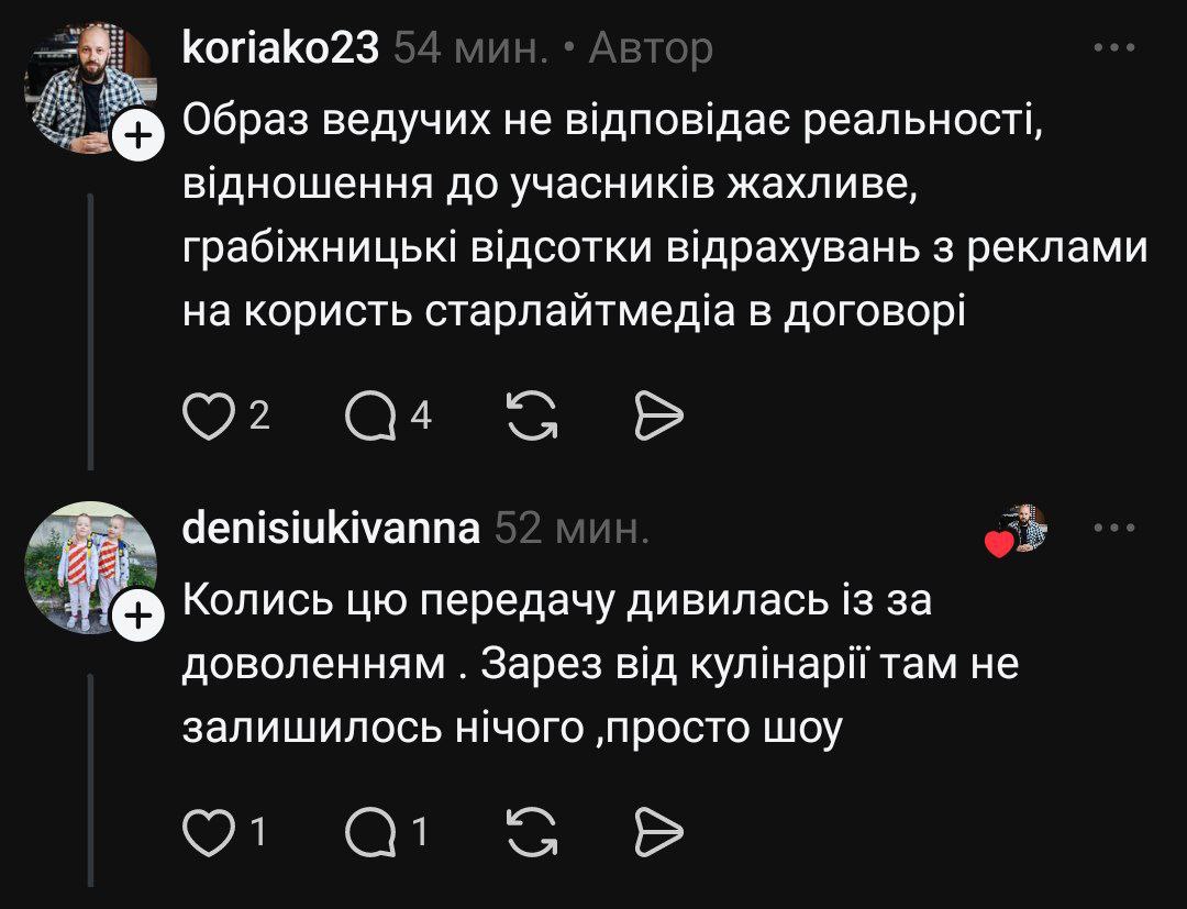 • "Когда-то эту передачу смотрела с удовольствием, сейчас от кулинарии не осталось ничего, просто шоу";