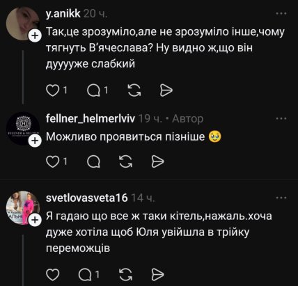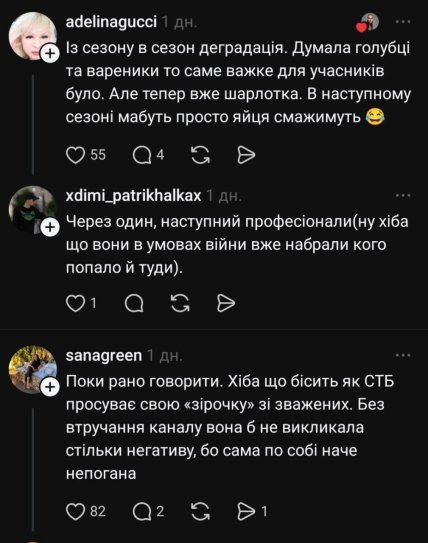 • "Пока рано говорить. Разве что бесит как СТБ продвигает свою "звездочку" из "Зважених"".
