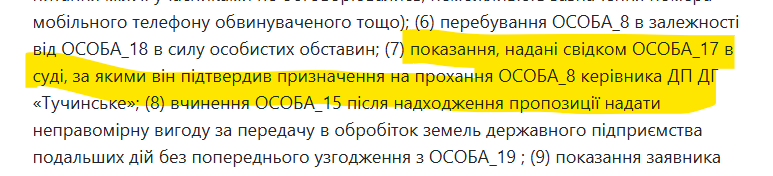 В частности, в материалах дела есть упоминание о том, что свидетель Ярослав Гадзало дал в суде показания, "которыми он подтвердил назначение по просьбе Гунько руководителя ГП ОХ "Тучинское". Ивана Зарудняка, который возглавлял ГП на протяжении семи лет, уволили.