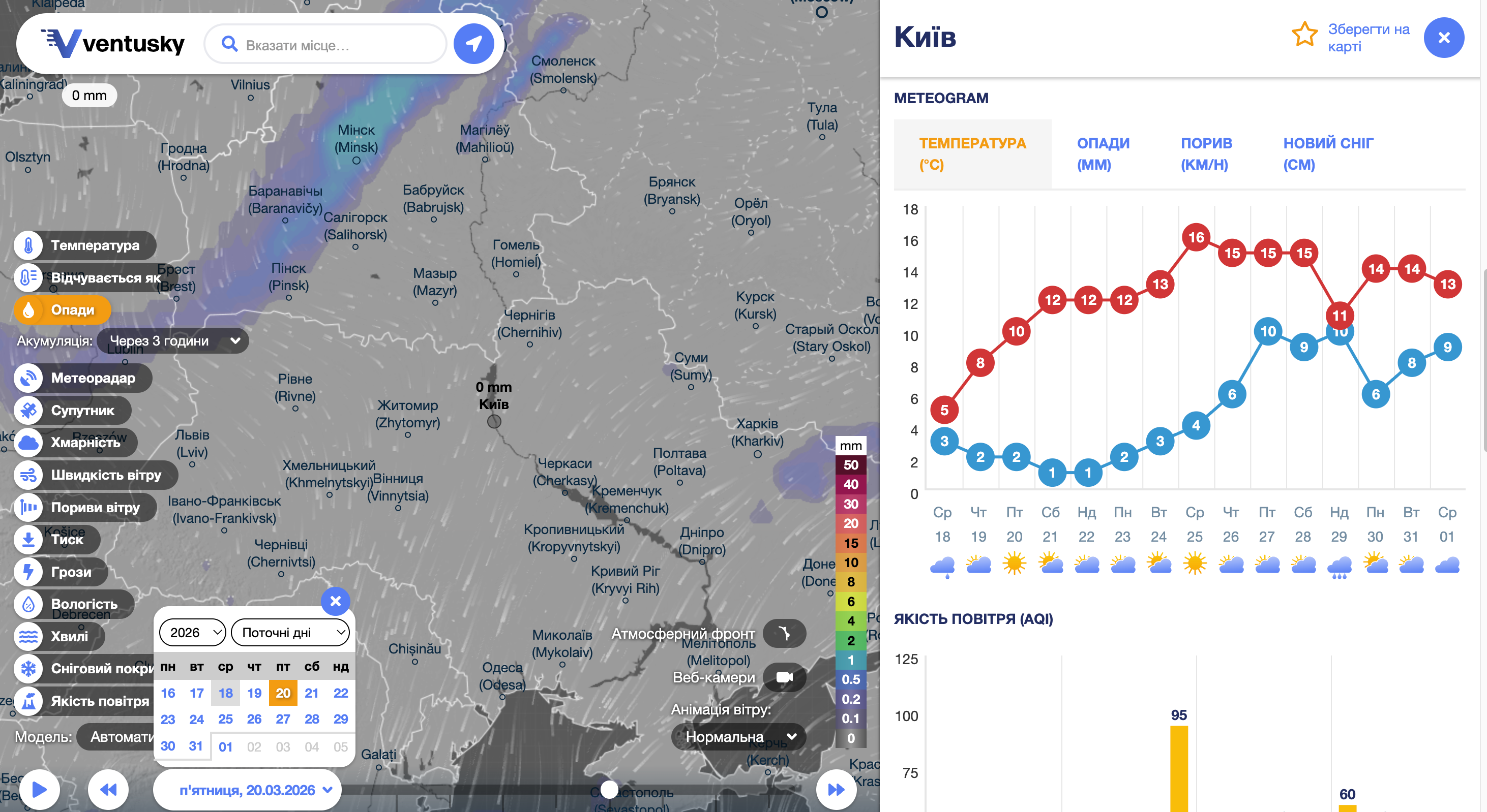 Согласно прогнозу Укргидрометцентра, в ночь на четверг, 19 марта, столбики термометра опустятся до 0…+2 градусов, а днем температура поднимется до +5…+7 градусов. Местами ожидается небольшой дождь.