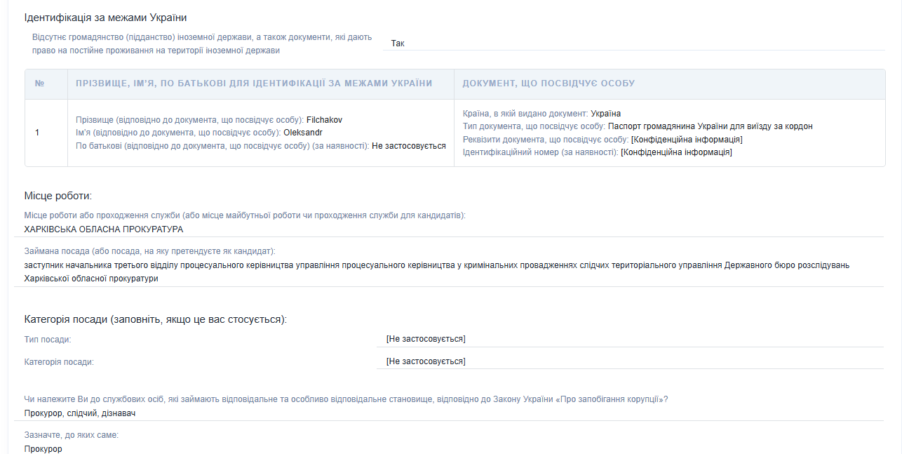 За прошлый год он подал НАПК декларацию уже как заместитель начальника отдела.