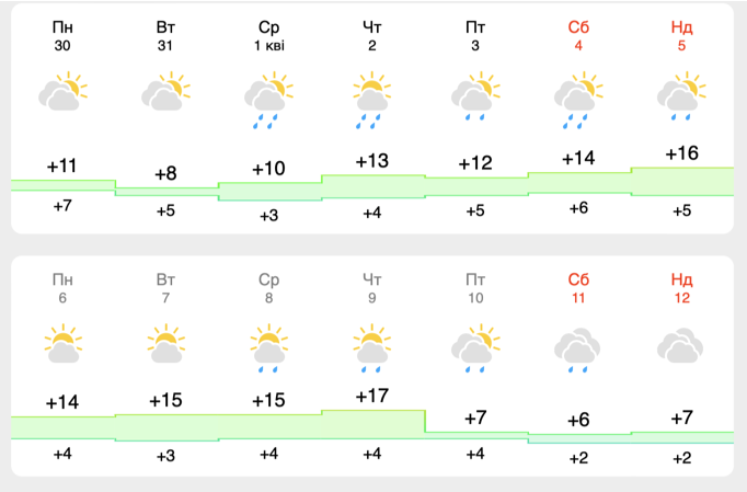 Однако ближе к праздникам синоптики прогнозируют резкое изменение погоды. Начиная с пятницы, 10 апреля, во Львове снова дождется, а температурные показатели существенно упадут. В предпасхальную субботу и воскресенье, 11-12 апреля, дневная температура будет колебаться в пределах +6…+7°C, а ночью возможно похолодание до +2°C.